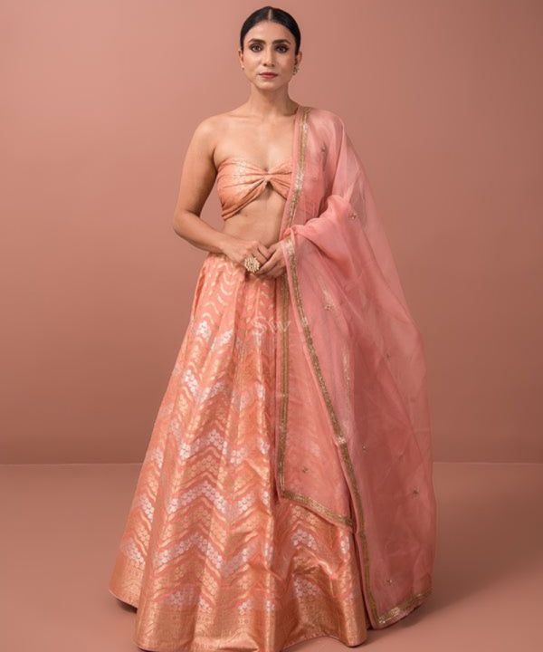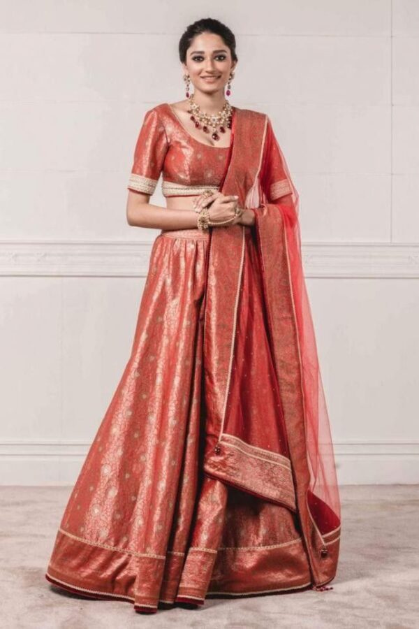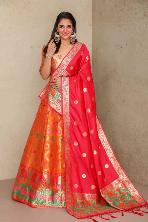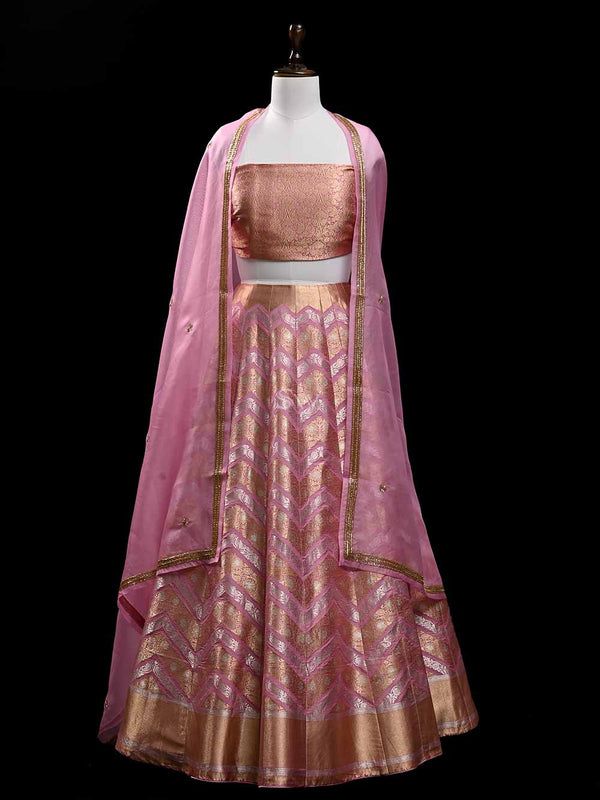 Peachy Banarasi Silk Lehenga